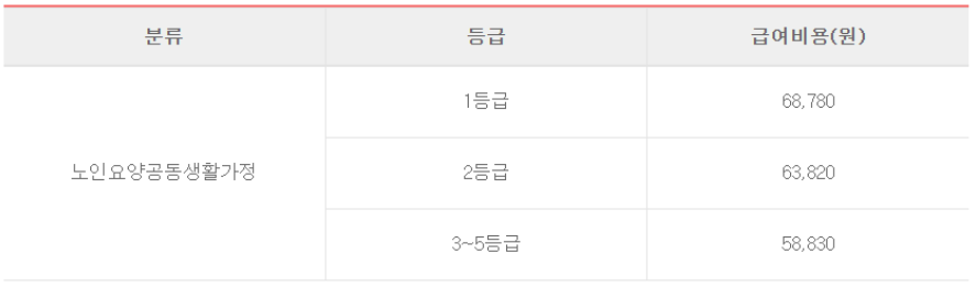 5. 장기요양급여 월 한도액 및 급여 비용