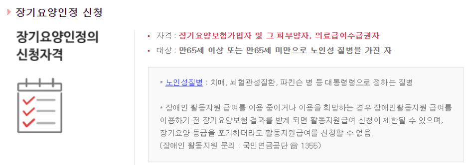 1. 노인 장기요양급여 신청 방법 및 자격